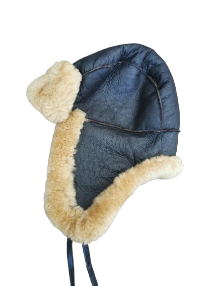 Cappello da aviatore in pelle di pecora marrone, caldo e resistente, perfetto per proteggere dal freddo con stile autentico vintage.